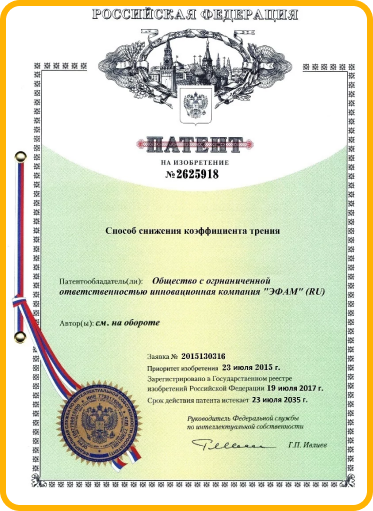 Вся линейка EFAM сертифицирована и протестированна на протяжении 20 лет. Наши составы являются единственными на рынке, что можно заливать в ДВС согласно ГОСТ 6370–83 (СТ СЭВ 2876−81). Что соответствует 030 ТР ТС маслам и спец. жидкостям. Поэтому, мы гарантируем безопасное применение и отсутствие последствий, если вы передумаете пользоваться ЭФАМ.